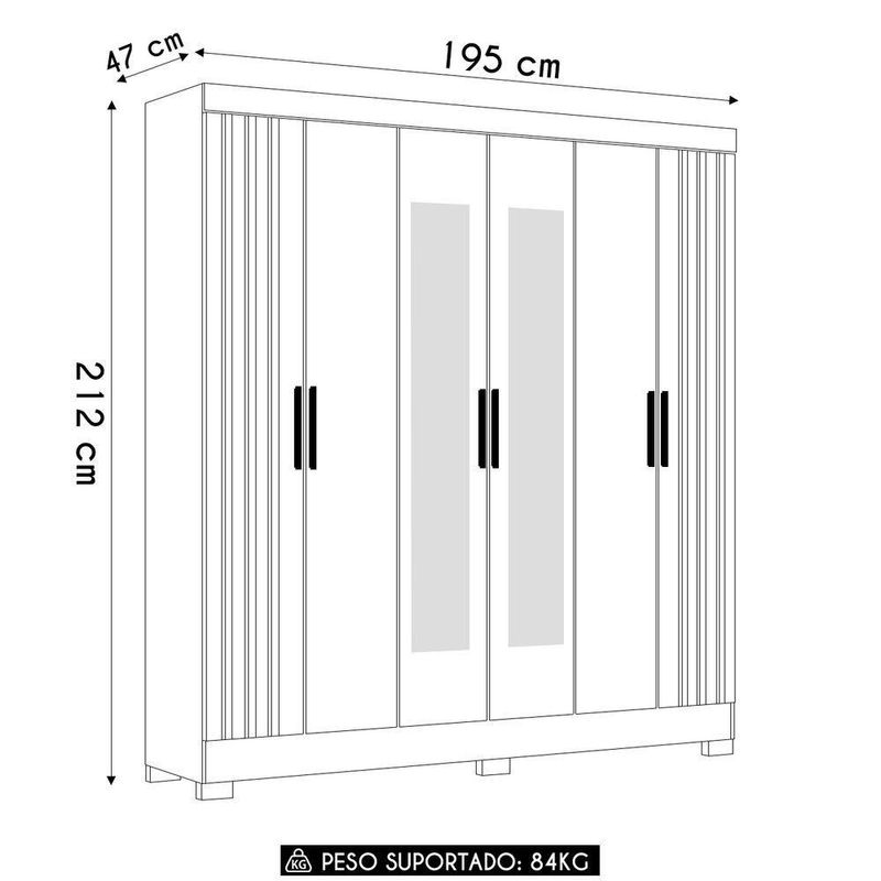Unindo elegância e praticidade, o Guarda Roupa Casal 195cm Espelho Ripado Arlon M07 Freijó/Cinza, da Mpozenato, é a escolha indispensável para o seu quarto! O Roupeiro possui seis portas com puxadores em MDF e dobradiças metálicas, em 2 delas, os detalhes ripados adicionam sofisticação e modernidade ao design do produto. Sua excelente repartição conta com quatro prateleiras para acomodar seus itens de maneira prática. Possui três cabideiros e um calceiro em alumínio, ideais para pendurar roupas de forma eficiente de modo que elas fiquem sempre bem organizadas e sem amassar. Além de duas gavetas com corrediças telescópicas para acessórios, roupas dobradas, dentre outros objetos, e uma área adicional para guardar calçados. Os Espelhos presentes nas portas centrais garantem utilidade e estilo, servindo para você conferir o visual antes de sair e ainda criam uma sensação de amplitude no ambiente. Os pés em PVC facilitam a limpeza, mantendo tudo sempre impecável. Com estrutura em MDP de 12/15mm e acabamento em pintura UV, esse Guarda Roupa Casal une beleza, resistência e organização, sendo a escolha ideal para otimizar e agregar funcionalidade ao seu Quarto. Não perca a oportunidade de transformar seu espaço com este móvel completo e versátil. Aproveite, e adicione agora mesmo ao seu carrinho! Especificações Dimensões do Produto Largura: 195 cm. Altura: 212 cm. Profundidade: 47 cm. Peso: 122,1 Kg. Características do Produto Material da Estrutura: MDP 12mm/15mm. Material do Fundo: HDF 2,5mm. Peso suportado: 84 kg distribuídos. Acabamento: Pintura UV. Escala de Brilho: Acetinado. Quantidade de Portas: 6 Portas. Tipo de Porta: Convencional. Material das Dobradiças: Metálicas. Possui Puxadores: Sim. Material do Puxador: MDF. Possui Espelho: Sim. Possui Gavetas: Sim. Quantidade de Gavetas: 2 Gavetas. Tipo de Corrediças: Telescópicas. Possui Prateleiras: Sim. Quantidade de Prateleiras: 4 Prateleiras. Possui Cabideiro: Sim. Quantidade de Cabideiros: 3 Cabideiros. Material dos Cabideiros: Alumínio. Possui Pés: Sim. Quantidade de Pés: 6 pés. Material dos Pés: PVC. Diferenciais: - Design moderno.- Amplo espaço interno.- Portas com detalhes ripados.- Portas com dobradiças metálicas.- Gavetas com corrediças telescópicas.Sistema de Montagem: Girofix / Cavilhas / Parafusos. Manual de Montagem: Sim. Complexidade da Montagem: Alta. Volumes: 4 Volumes. Conteúdo da embalagem: 1 Guarda Roupa. do Fabricante: 90 dias contra defeito de fabricação. Montagem: Recomendamos que seja feita por um . Recomendação de Limpeza: Utilize pano levemente úmido. Observações importantes - Produto para uso residencial em ambiente interno, não devendo ficar exposto diretamente ao sol, calor e umidades excessivas.- Pode haver alguma diferença de tonalidade entre a imagem e o produto real, por conta do tratamento de imagens e a calibração de cores do seu monitor.- As imagens são meramente ilustrativas, não acompanham objetos de decoração e eletrônicos.- Ao receber a mercadoria, o cliente deve verificar as condições da embalagem, caso haja alguma não assine o comprovante de recebimento.- Montagem, desmontagem e outras instalações serão de responsabilidade do cliente. Não nos responsabilizamos, no ato da , por subir escadas/elevadores ou pelo transporte por guincho em apartamentos. Eventuais despesas são de responsabilidade do comprador.- Confira as dimensões do produto e certifique-se de que passará normalmente por supostos elevadores, portas, escadas e/ou corredores de sua residência.