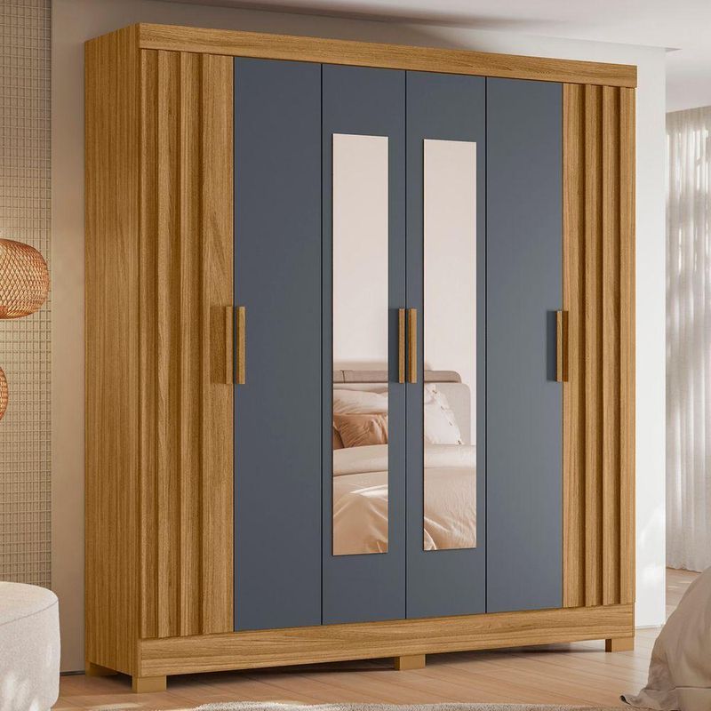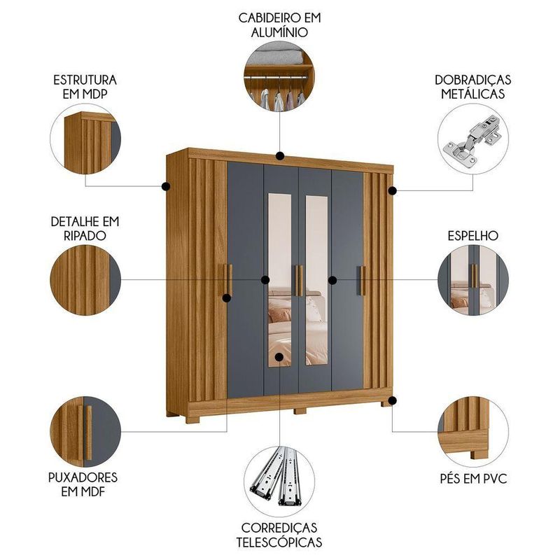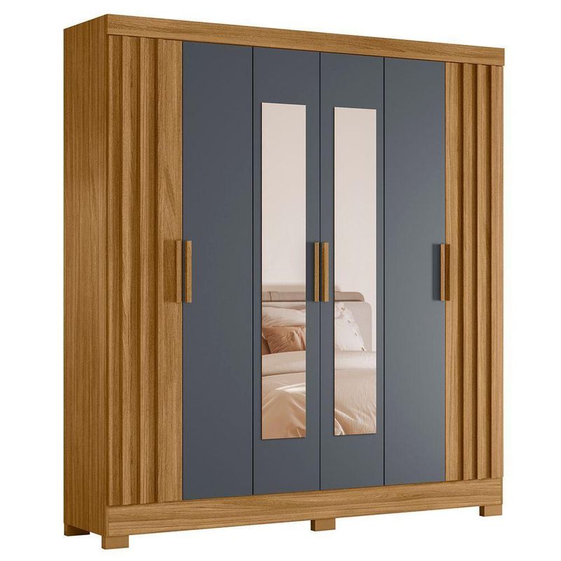 Guarda Roupa Casal 195cm Espelho Ripado Arlon M07 Freijó/cinza - Mpozenato