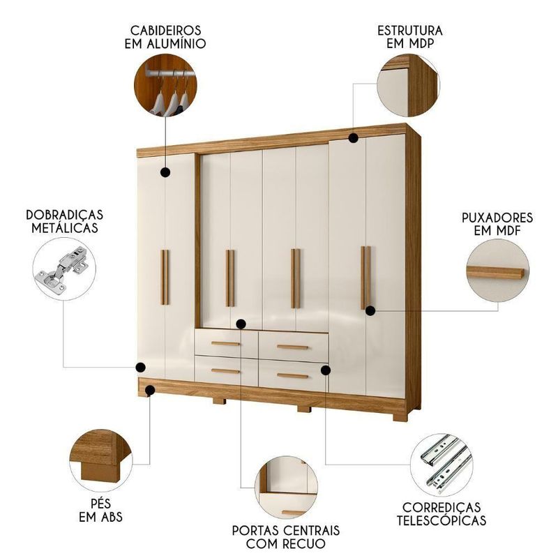 Guarda Roupa Casal 237cm 8 Portas Archi Freijó/Off White Z17 - Mpozenato