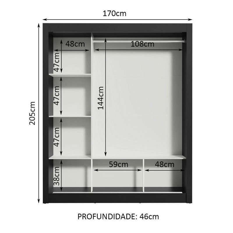 R.: Sim. Cor: Cinza | Garantia: 3 meses contra defeitos de fabricação | Dimensões - Altura: 205 cm | Dimensões - Largura: 170 cm | Dimensões - Profundidade: 46 cm | Produto: Guarda-Roupa | Marca: Madesa | Peso aproximado: 90 kg | Material: MDP | RBN: Casa/Móveis/Móveis de Quarto | Estado de Origem: RS | Material para Filtro: MDP | Conteúdo da embalagem: 1 Guarda-roupa | Instruções/Cuidados: Utilize um pano limpo, levemente umedecido e seque em seguida a superfície. Não usar produtos químicos ou abrasivos para a limpeza. Recomendamos polir seu móvel com lustra-móveis duas a três vezes por ano. | Peso Produto Com Embalagem (Kg): 90 | Largura Produto Com Embalagem (cm): 55 | Altura do Produto com Embalagem (cm): 24.5 | Comprimento Produto Com Embalagem (cm): 214.7 | Nome do Simples no Fornecedor: Guarda-Roupa Casal Madesa Mônaco 3 Portas de Correr com Espelho - Preto/Cinza | Tipo de Guarda Roupa: Casal | Quantidade de Portas: 3 | Tonalidade: Cinza | Produto precisa de ?: Sim, sugerimos a contratação do serviço de (para os CEPs em que o serviço está disponível) ou de algum profissional experiente de sua preferência | Descrição do Tamanho: 205 cm x 170 cm x 46 cm | Fabricante: Madesa Cor: Preto/Cinza