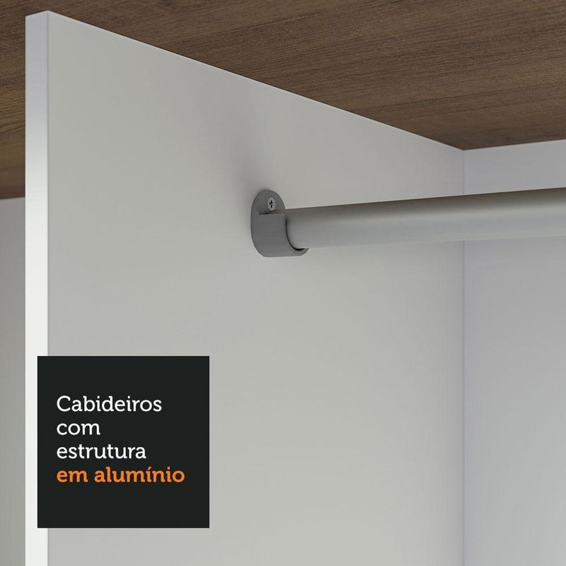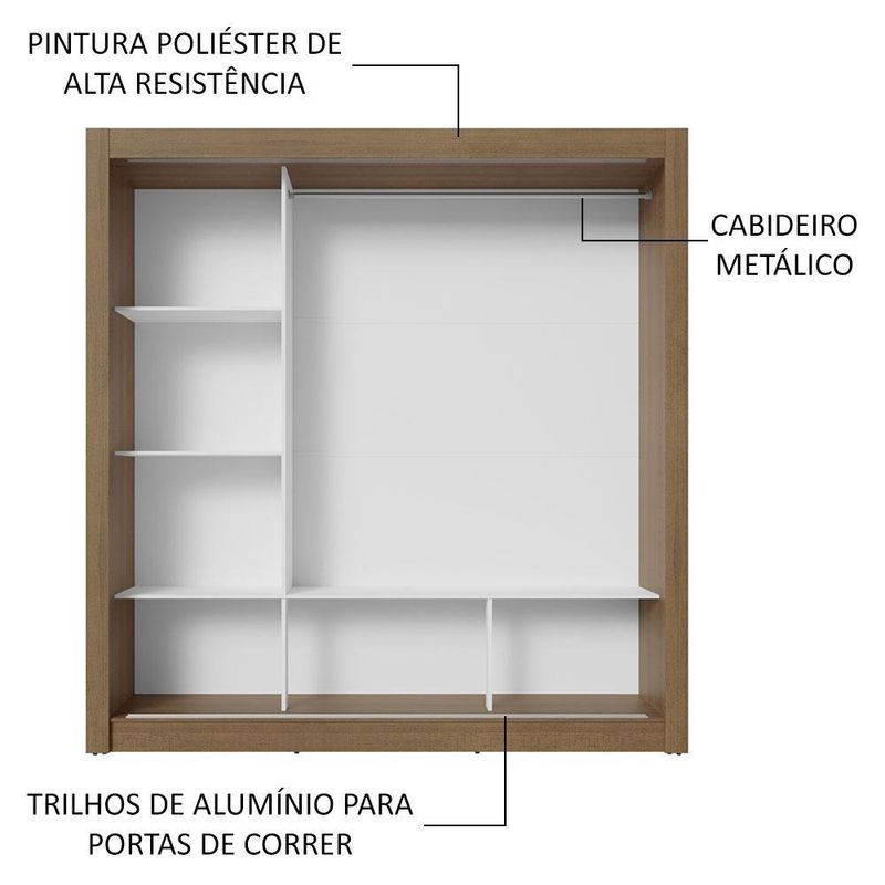 Ótimo espaço interno e organização: Projetado para um casal, possui diversos nichos que facilitam a organização de roupas, calçados e acessórios. O tubo cabideiro metálico é resistente e perfeito para pendurar roupas longas.