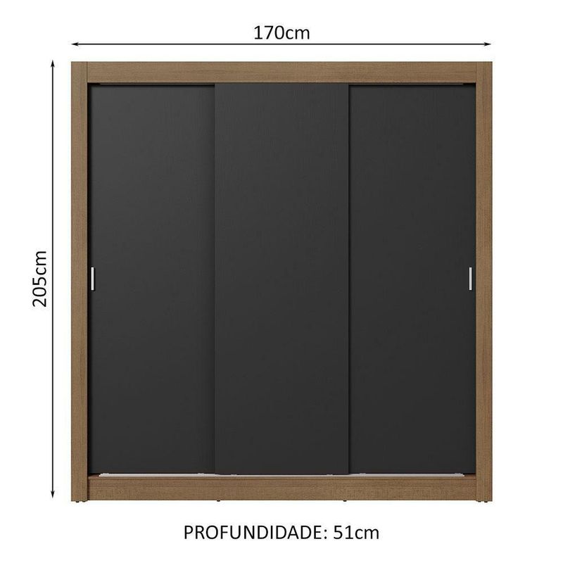 Guarda-roupa Casal 3 Portas De Correr Rustic/preto Nobre Madesa Rustic/preto