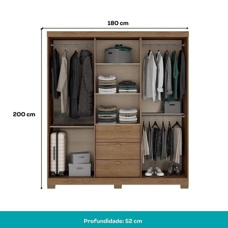 Medidas totais: Largura: 180 cm | Altura: 200 cm | Profundidade: 52 cm