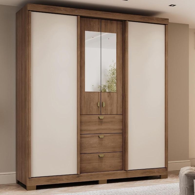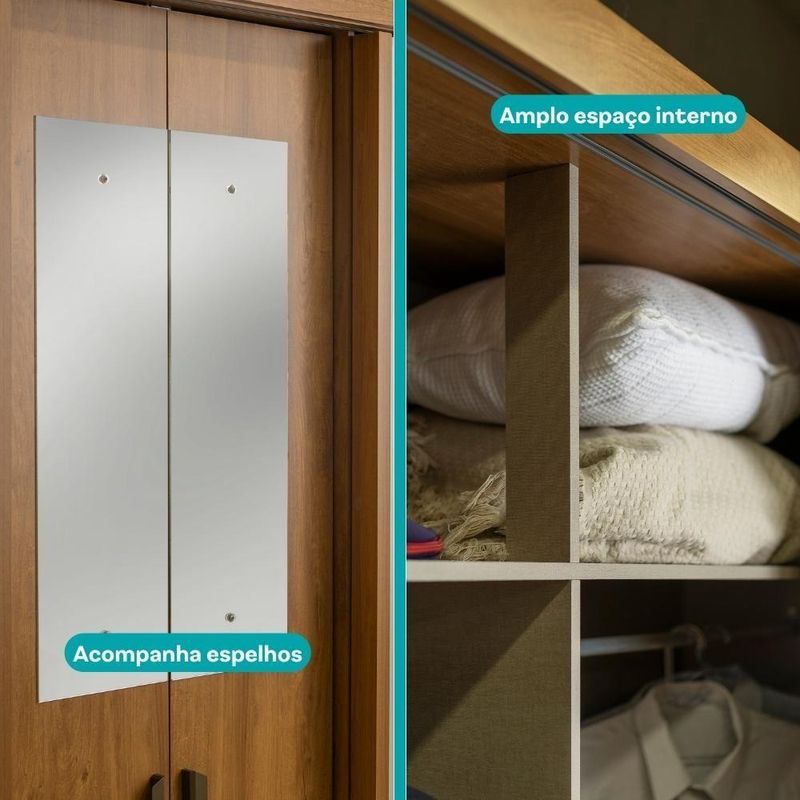 Guarda Roupa Casal 4 Ptas C/ Espelho Fit Carraro Freijó/offw