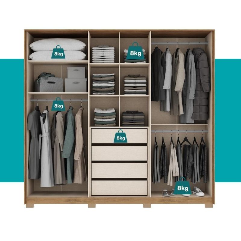 O Guarda Roupas Casal Mônaco é a escolha perfeita para quem busca praticidade, armazenamento e estilo em um só móvel. Com 6 portas e 4 gavetas, ele oferece muito espaço para manter tudo organizado. Nossos produtos são elaborados com matéria-prima de alta qualidade, como MDP e MDF, pintura UV e revestimento interior com proteção, assegurando durabilidade e resistência aos produtos.Especificações do Guarda-Roupa: