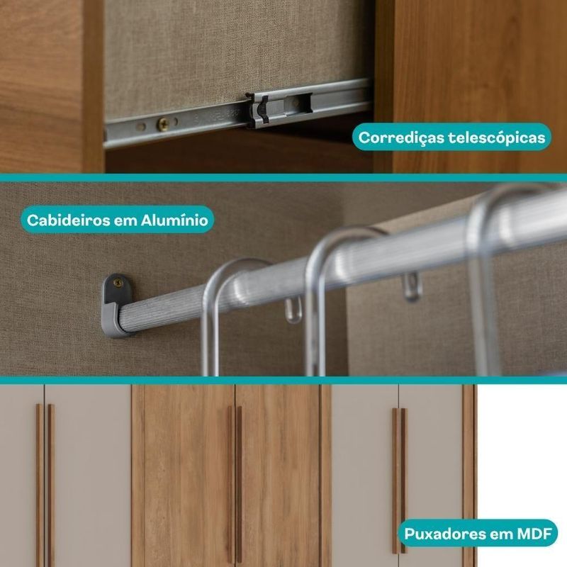 Guarda Roupa Casal 6 Portas 4 Gavetas Mônaco Carraro Freijó Com Avelã