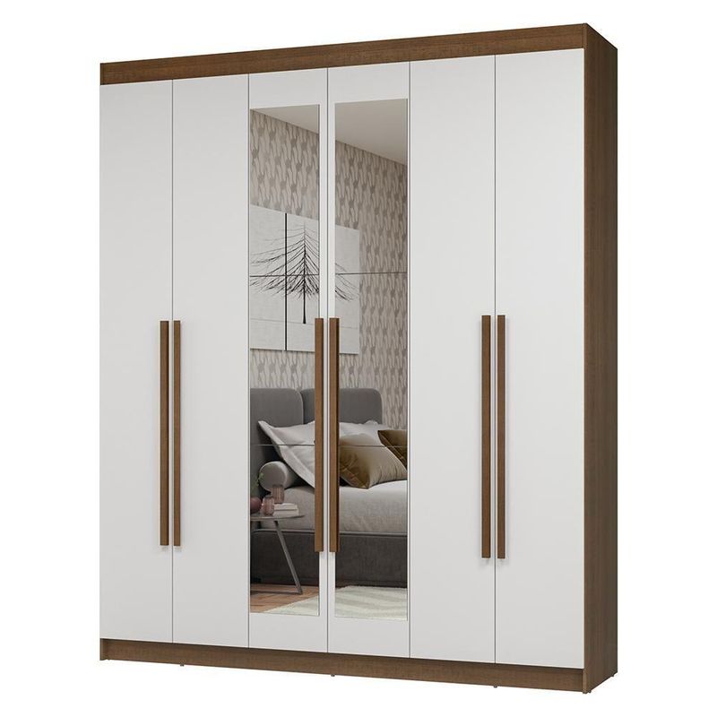 Guarda-roupa Casal 6 Portas Batentes Com Espelho Netuno Madesa Rustic/branco