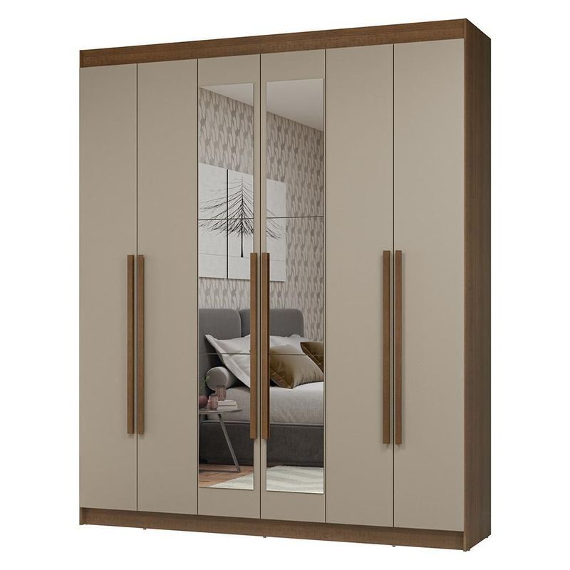 Guarda-roupa Casal 6 Portas Batentes Com Espelho Netuno Madesa Rustic/crema