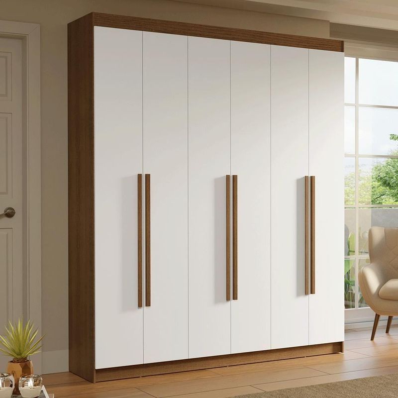 Guarda-roupa Casal 6 Portas Batentes Saturno Madesa Rustic/branco