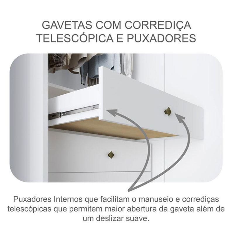 Guarda Roupa Casal Ambiente Belmonte 2 Portas 4 Gavetas Neve Com Espelho - Novo Horizonte