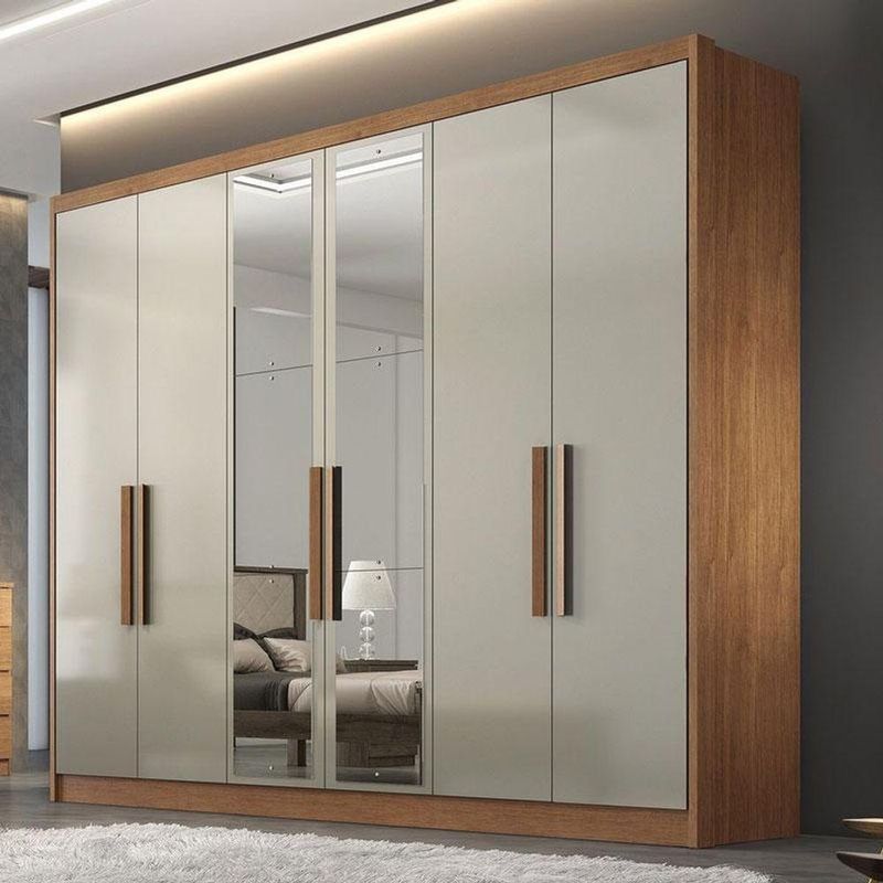 Guarda Roupa Casal Ambiente Linea 6 Portas 4 Gavetas Cumaru 25 Fendi Com Espelho - Novo Horizonte