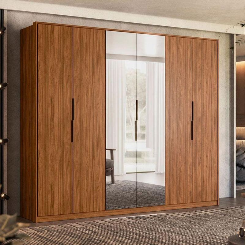 Guarda Roupa Casal Atrice Ambiente 6 Portas Nogueira Touch com Espelho Demóbile – Demartêz