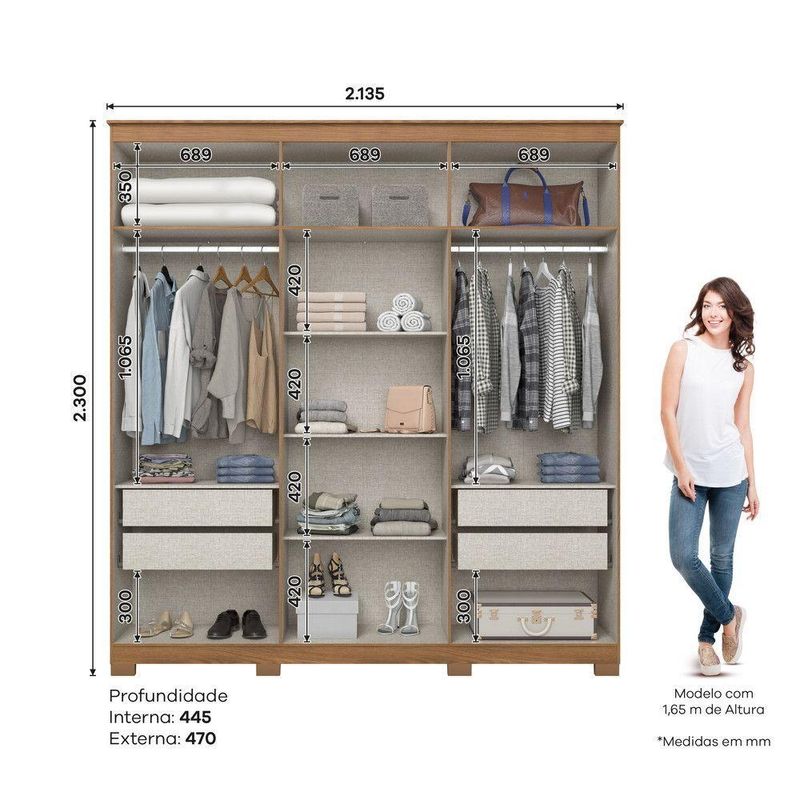 O Roupeiro Avila e a escolha ideal para organizar seu ambiente. Possui 6 portas, detalhes com apliques ripados, 4 gavetas com corredicas telescopicas, cabideiros em aluminio, puxadores em MDF revestidos, chapeu com soft e pes em ABS. Seu amplo espaco interno proporciona uma organizacao eficiente e funcional para o seu quarto.