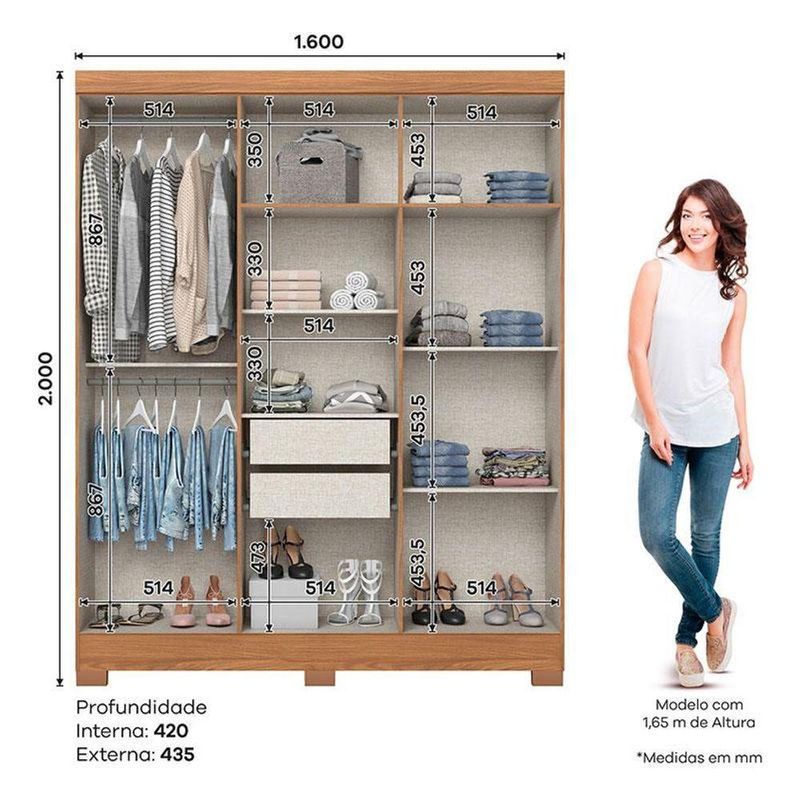 Guarda Roupa Casal B369 Nature Off White Henn - Briz Móveis