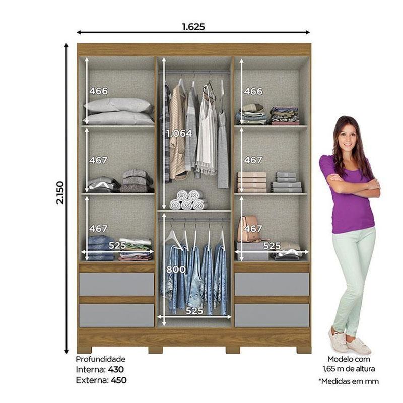 Guarda Roupa Casal B55 Nature Cinza Com Espelho - Briz Móveis