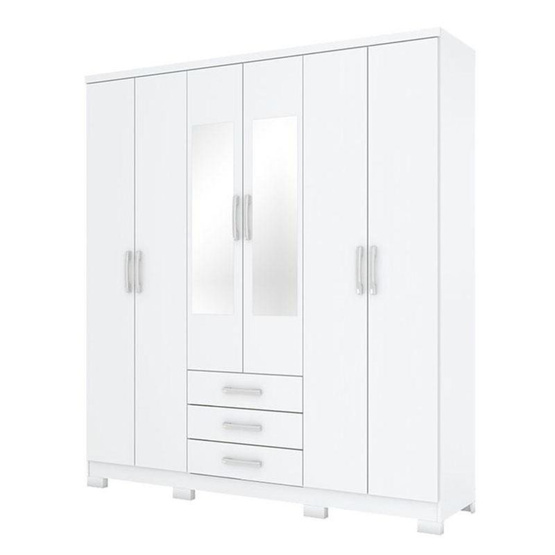 Guarda Roupa Casal Caju 6 Portas Branco Com Espelho - Henn