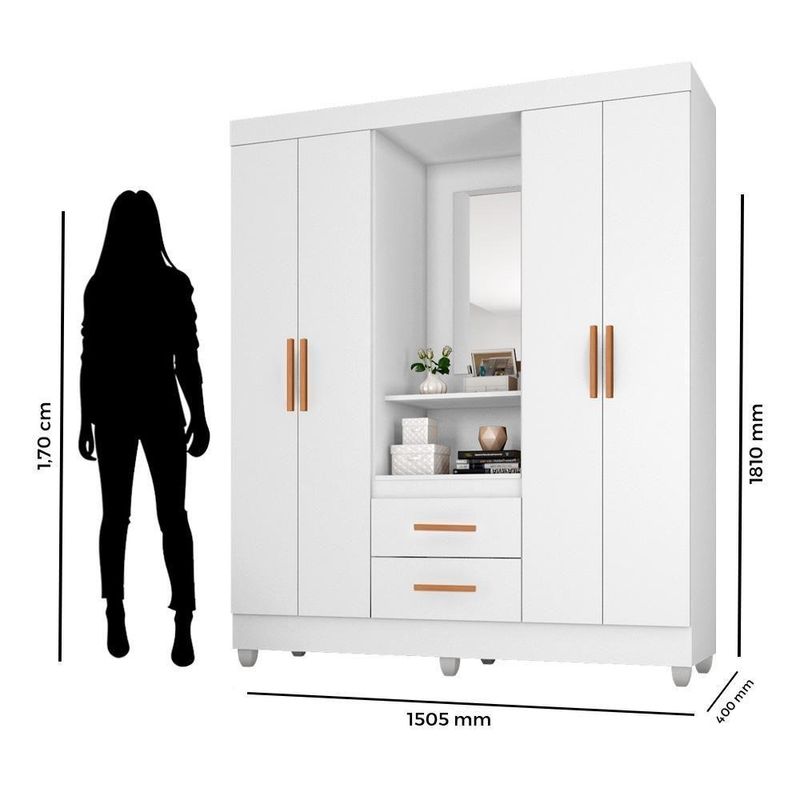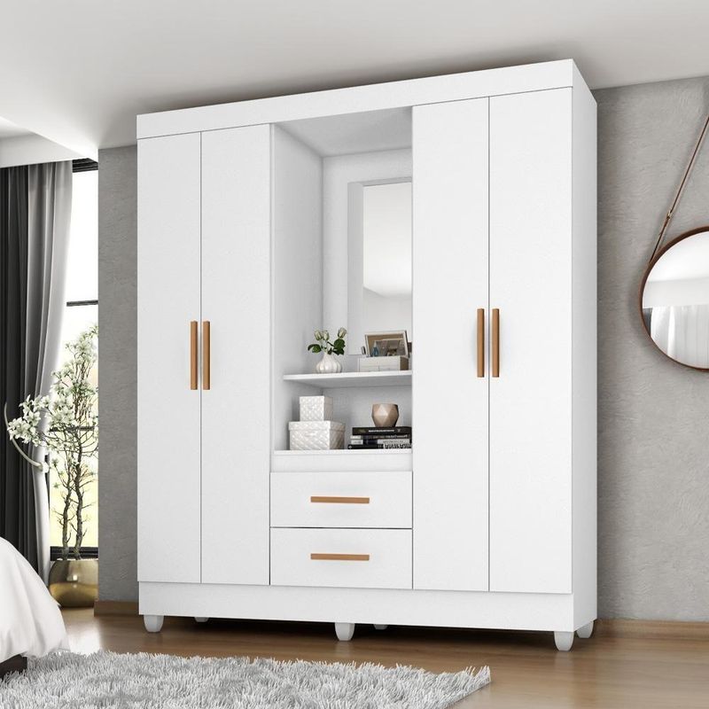 Guarda Roupa Casal Capela Branco Brilho - Móveis Leão