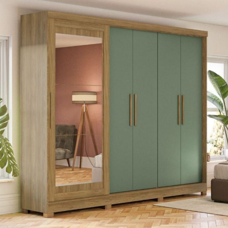 Guarda-roupa Casal Cb01n564 5 Portas 4 Gavetas Com Espelho E Pés Kappesberg Nogal E Verde Oliva