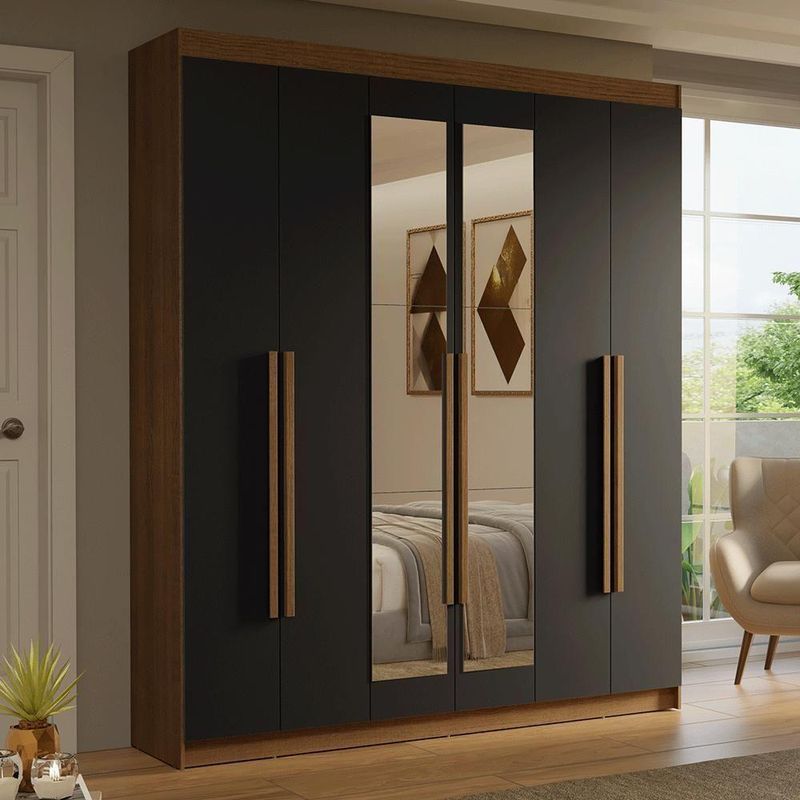 Guarda-roupa Casal 6 Portas Batentes Com Espelho Saturno Madesa Rustic/preto