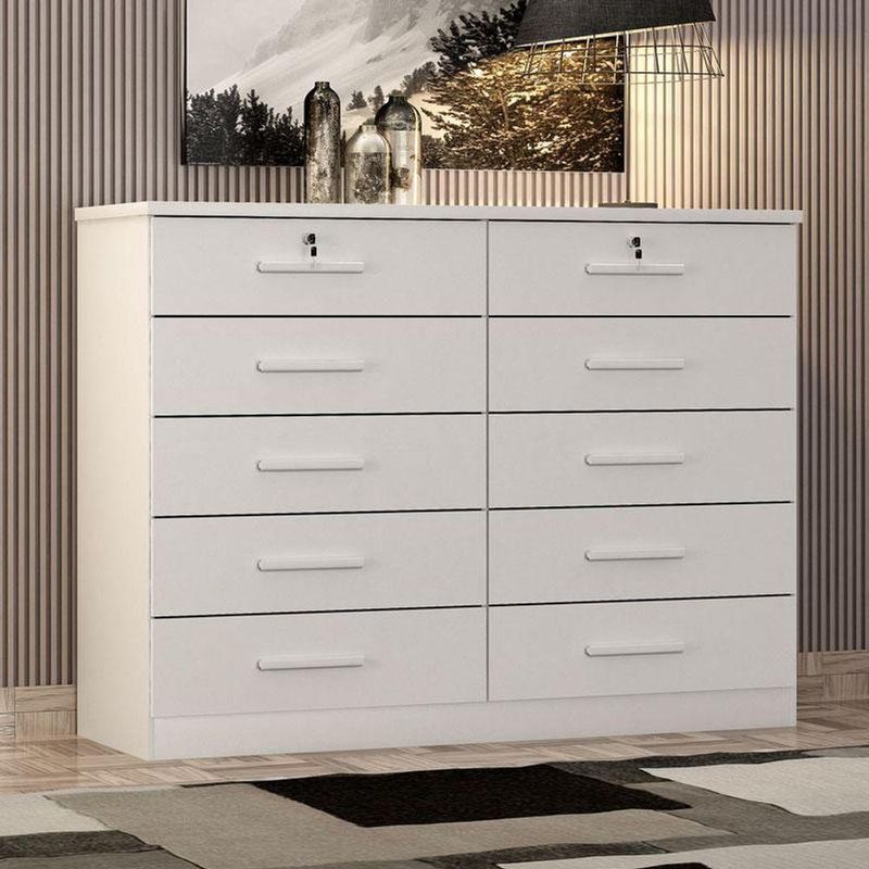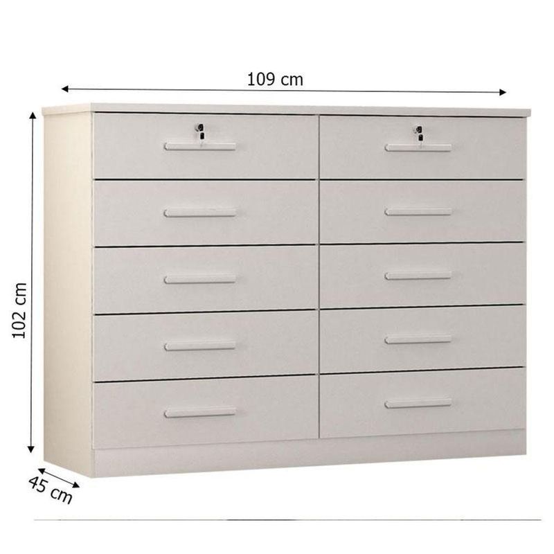 Profundidade: 55 cmCaracterísticas Técnicas:Cômoda Gaveteiro Milão com Chave Neve - Novo Horizonte- Desenvolvido em MDP/MDF