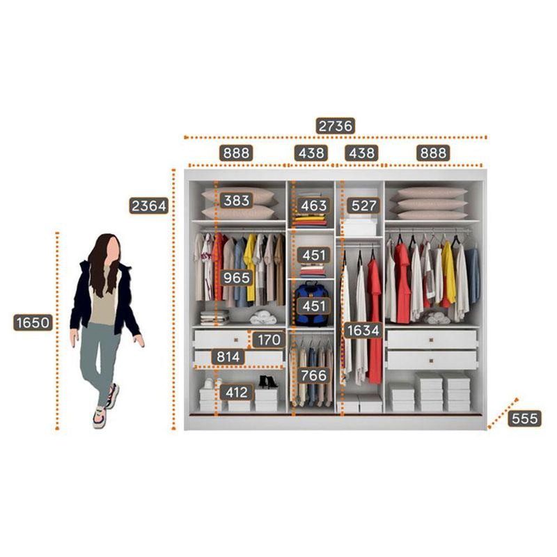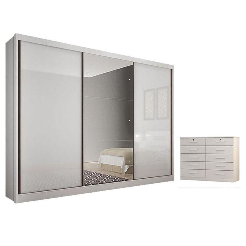 Guarda Roupa Casal Duna Com Espelho E Gaveteiro Milão Com Chave Neve - Novo Horizonte