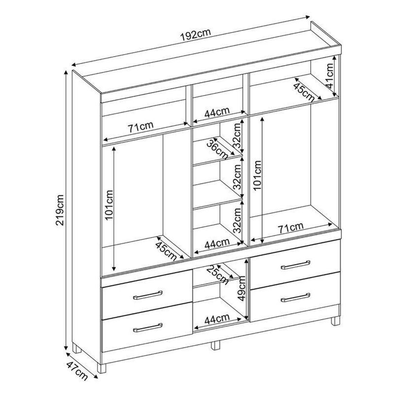 Profundidade: 47 cmObs: Montagem do produto não está incluso, acompanha manual de instruções.