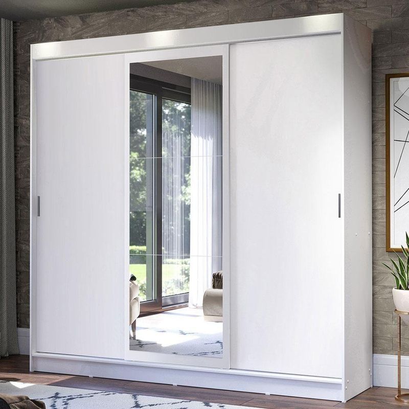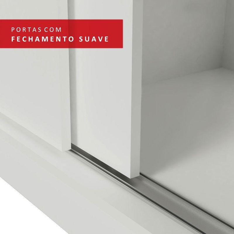 O acabamento é branco, feito com a Pintura Poliéster exclusiva da Madesa. Esse processo é ecologicamente correto e conserva o móvel por muito mais tempo.ecologicamente correto e conserva o móvel por muito mais tempo.Itens inclusos:- Três (3) portas de correr com sistema anti-descarrilhamento, sendo uma delas com espelhos