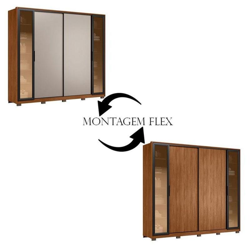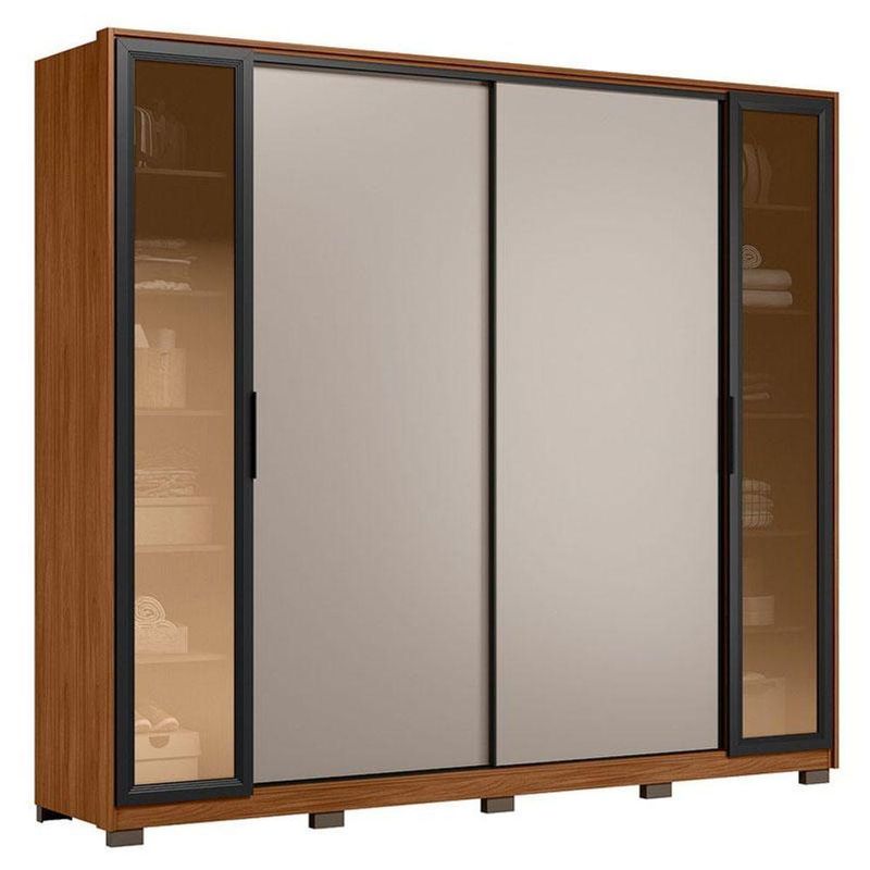 Guarda Roupa Casal Laredo Nogueira Nude Prime TX Flex com Vidro Reflecta e Pés Demóbile - Demartêz