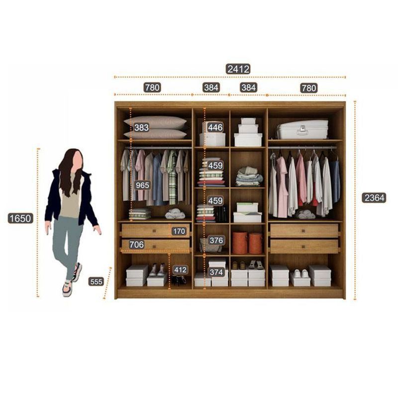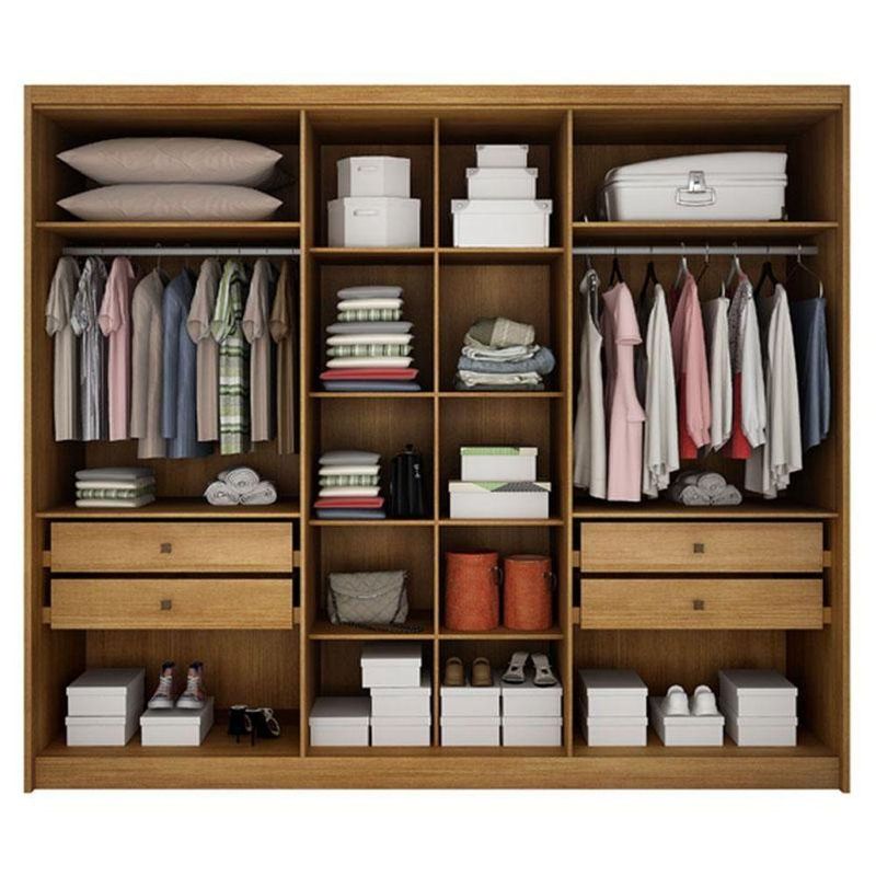 Guarda Roupa Casal Linea 6 Portas 4 Gavetas Cumaru 23 Com Nicho E Espelho - Novo Horizonte