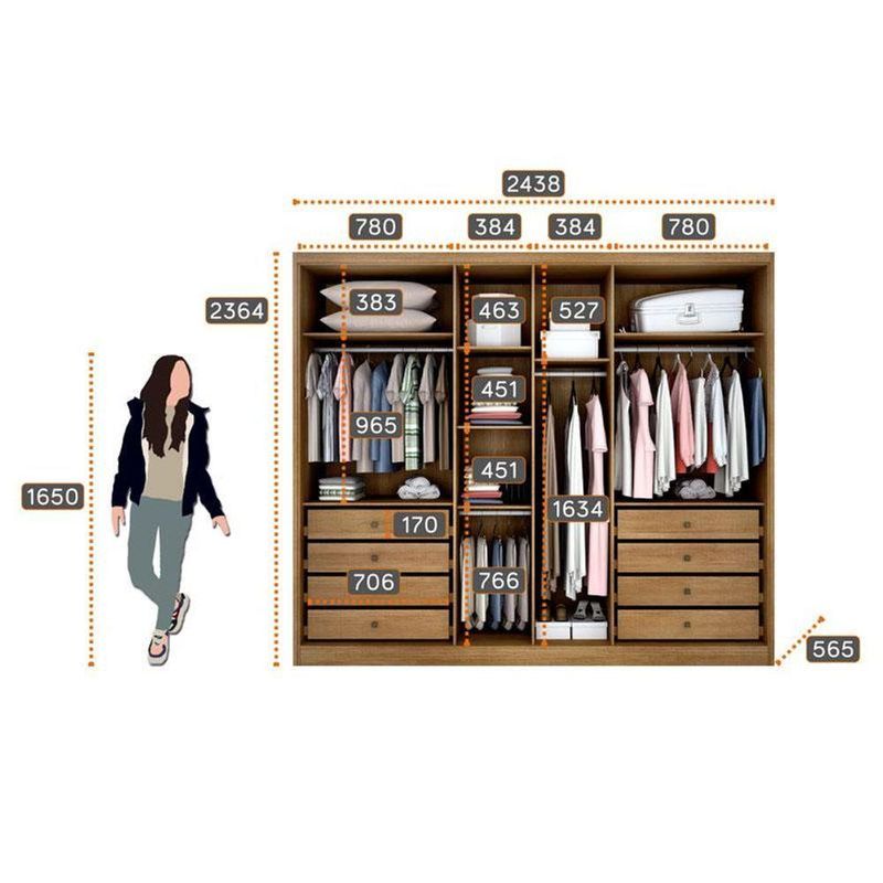 Guarda Roupa Casal Linea 6 Portas 8 Gavetas Cumaru 25 Fendi Com Nicho - Novo Horizonte