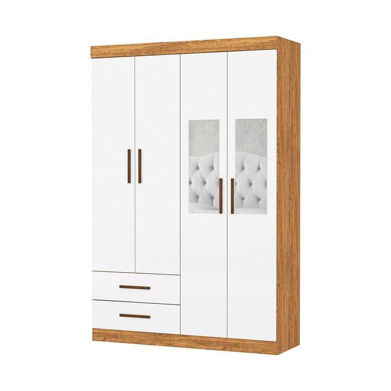 Guarda Roupa Casal Lu 4 Portas 2 Gav. Espelho Carioca Móveis Cinamomo Branco