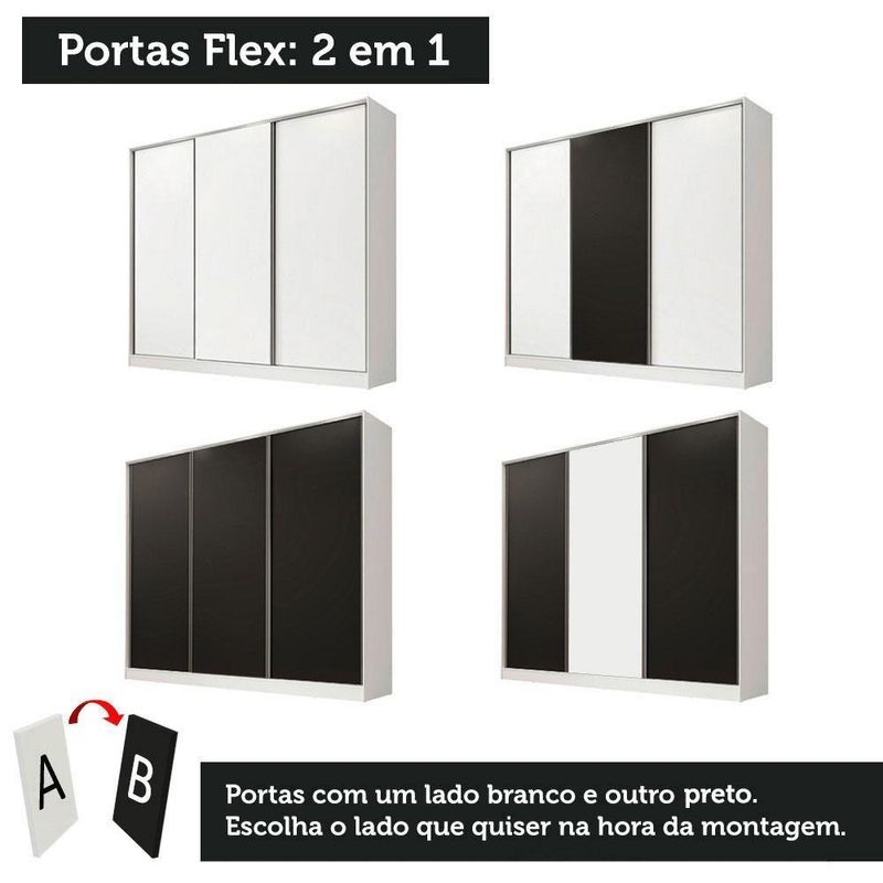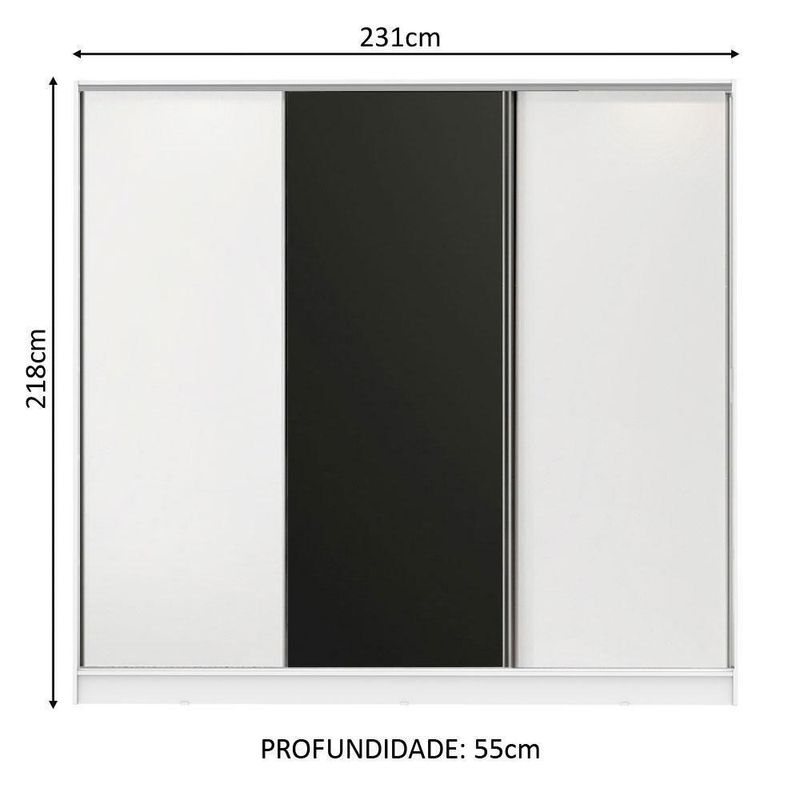 Guarda Roupa Casal Madesa 3 Portas de Correr Branco e Preto
