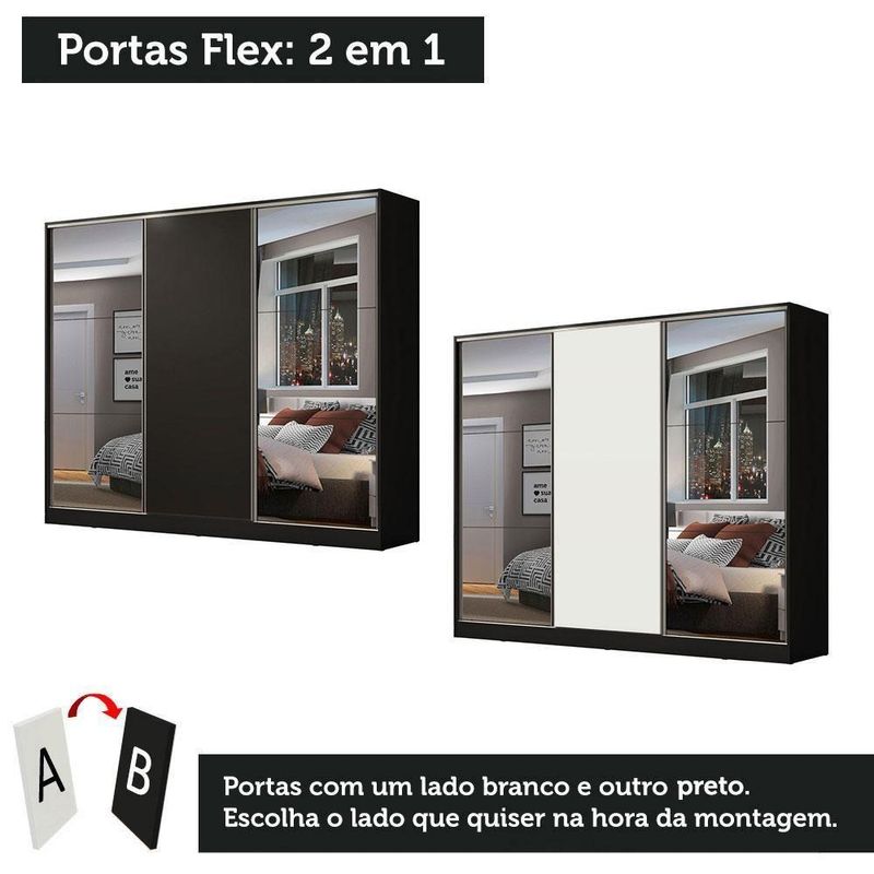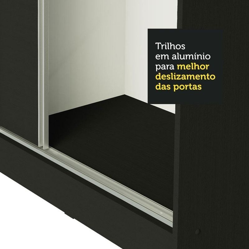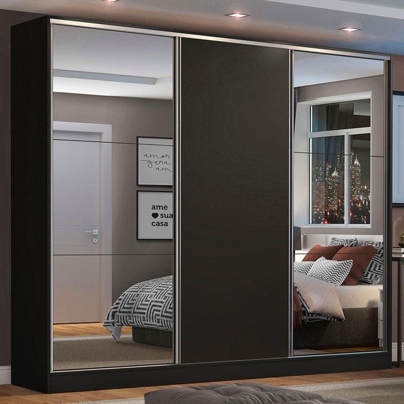 Guarda Roupa Casal 100% MDF Madesa Zurique 3 Portas de Correr com Espelhos Preto