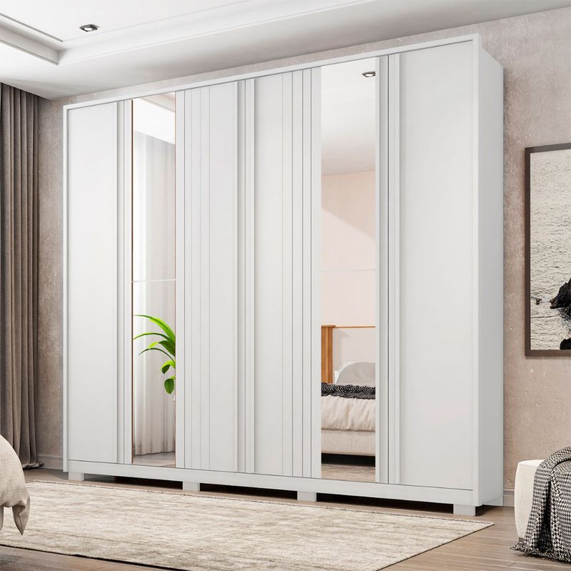 O Roupeiro Mozart é o móvel ideal para seu ambiente de descanso, trazendo mais elegância e funcionalidade, contando com 6 portas e 4 gaveteiros possui amplo espaço interno além de um design único. Feito em MDP e HDF possuem maior resistência e durabilidade ao móvel.