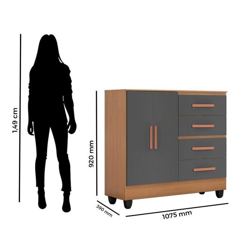 Profundidade: 40 cmCômoda Lite 4 Gavetas e 2 Portas Nature Cinza – Móveis Leão