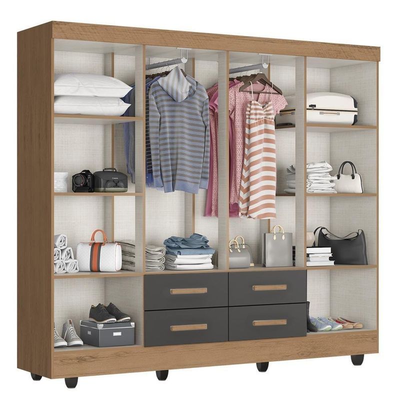 Guarda Roupa Casal Porto Com Cômoda Lite 4 Gavetas 2 Portas Nature Cinza - Móveis Leão