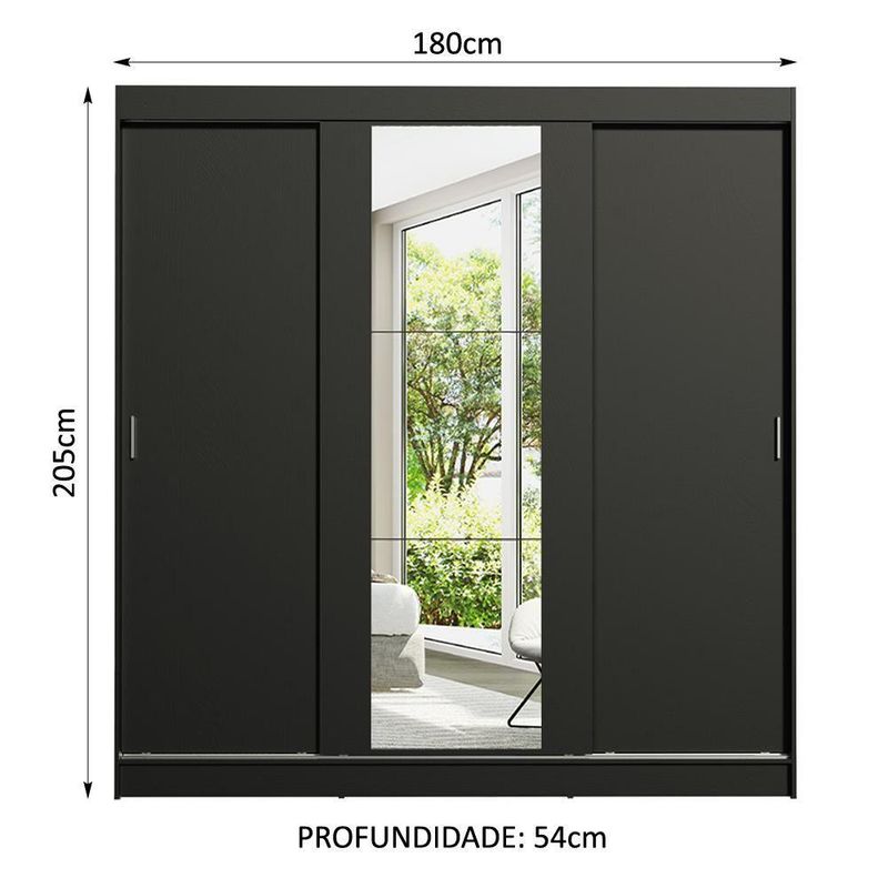 Guarda-roupa Casal Reno 3 Portas de Correr MadesaCor: Preto
