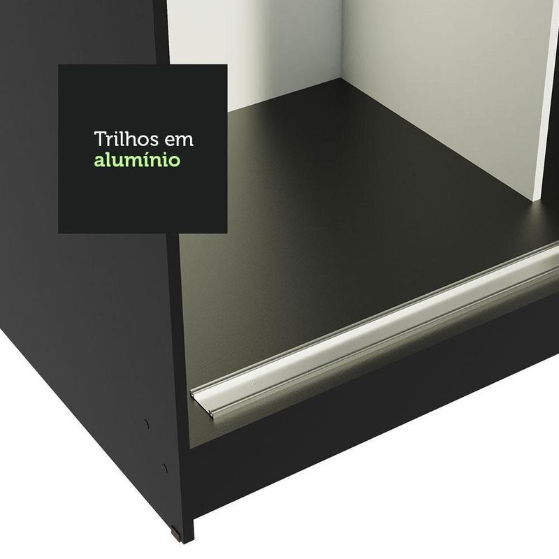 Para completar, a parte interna possui acabamento branco e a parte externa e as portas são pretas. O processo é feito com a tradicional Pintura Poliéster de 7 camadas da Madesa. Um método ecológico e que traz maior resistência ao móvel.