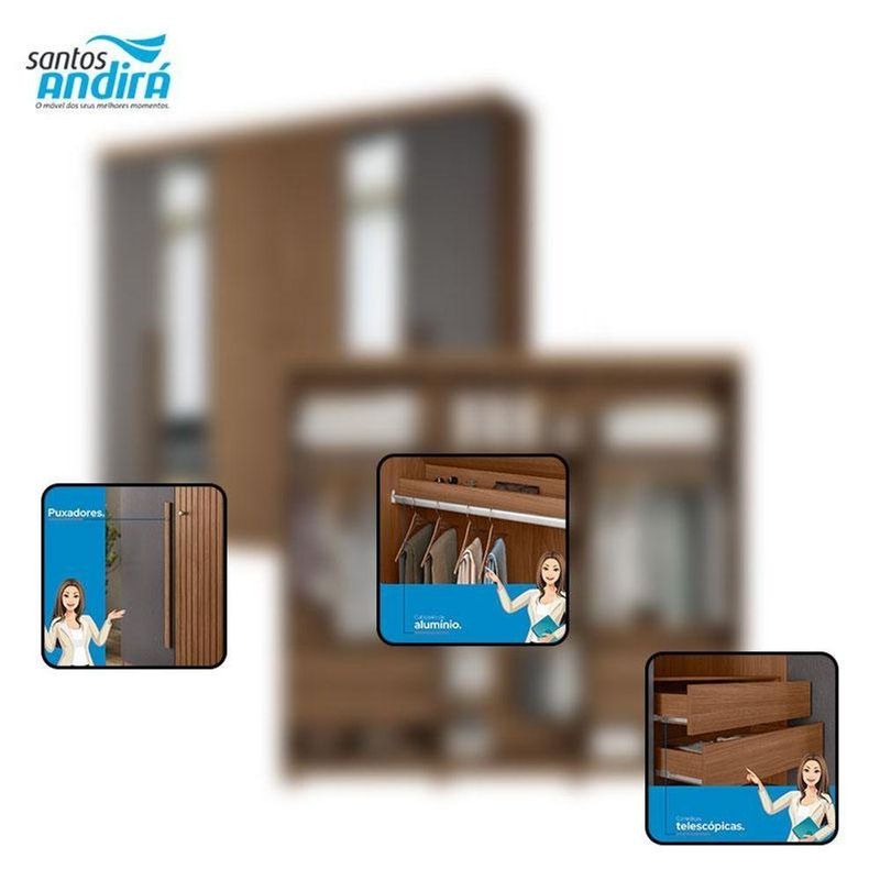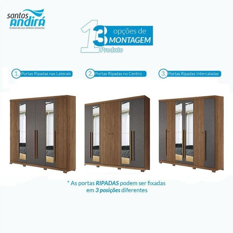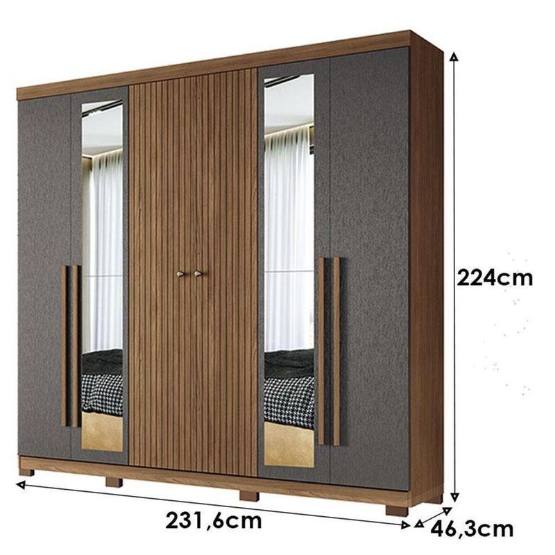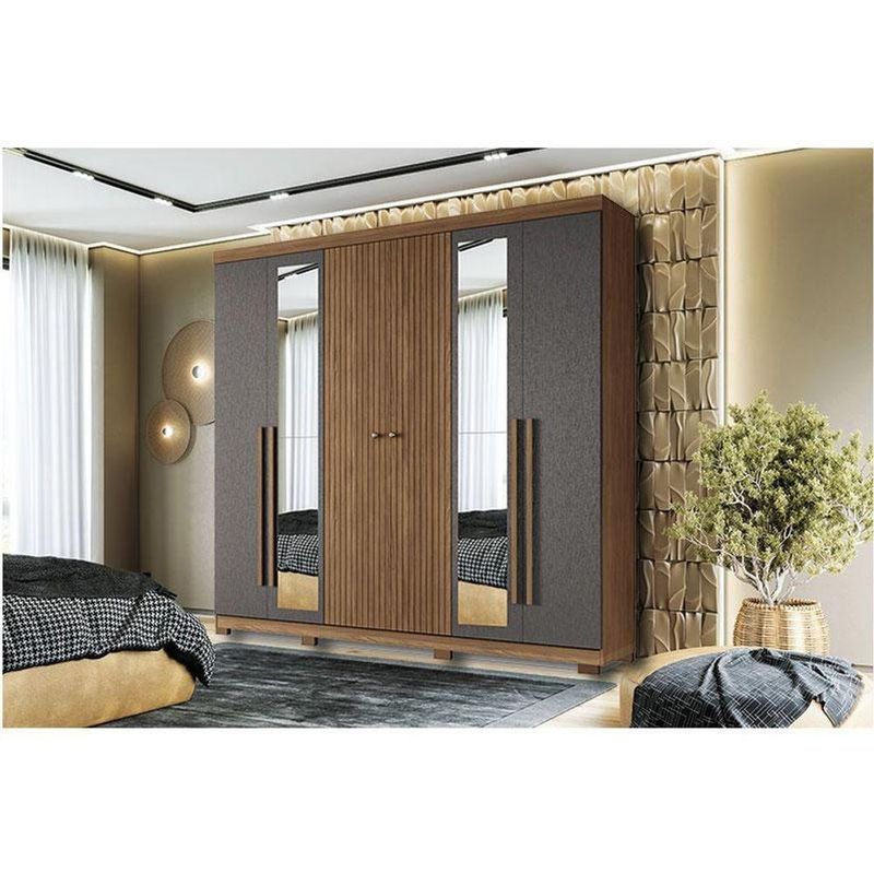 Guarda Roupa Casal Ripado 6 Portas Buriti Com Espelho E Pés Jatobá Grafite Acetinado - Santos Andirá