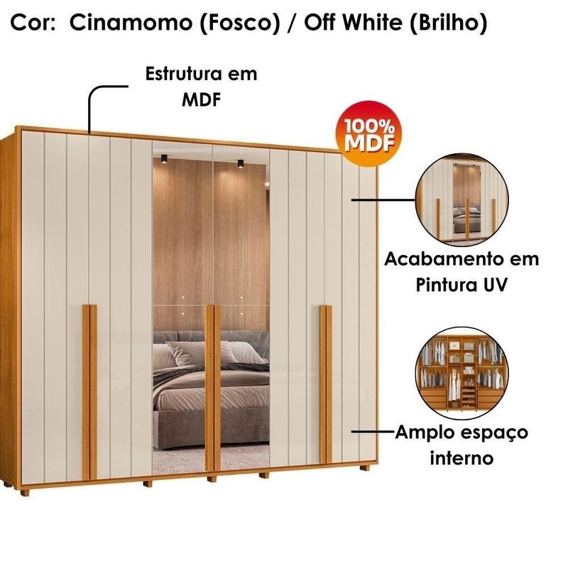 Guarda Roupa Casal Volpi 6 Portas Com Espelhos Mdf 278 Cm Cinamomo Off White Madetec