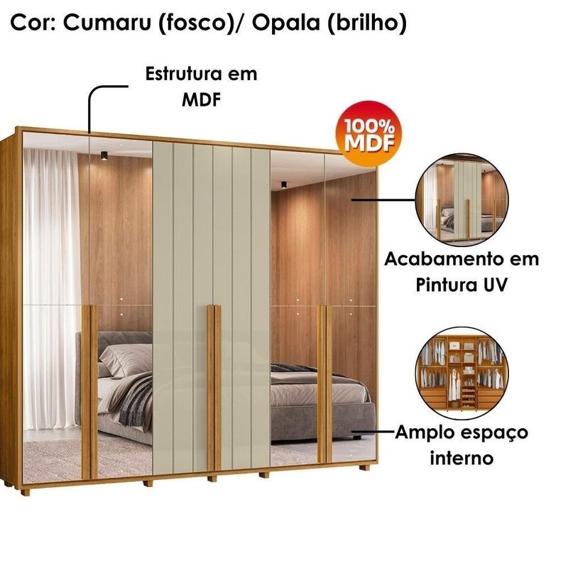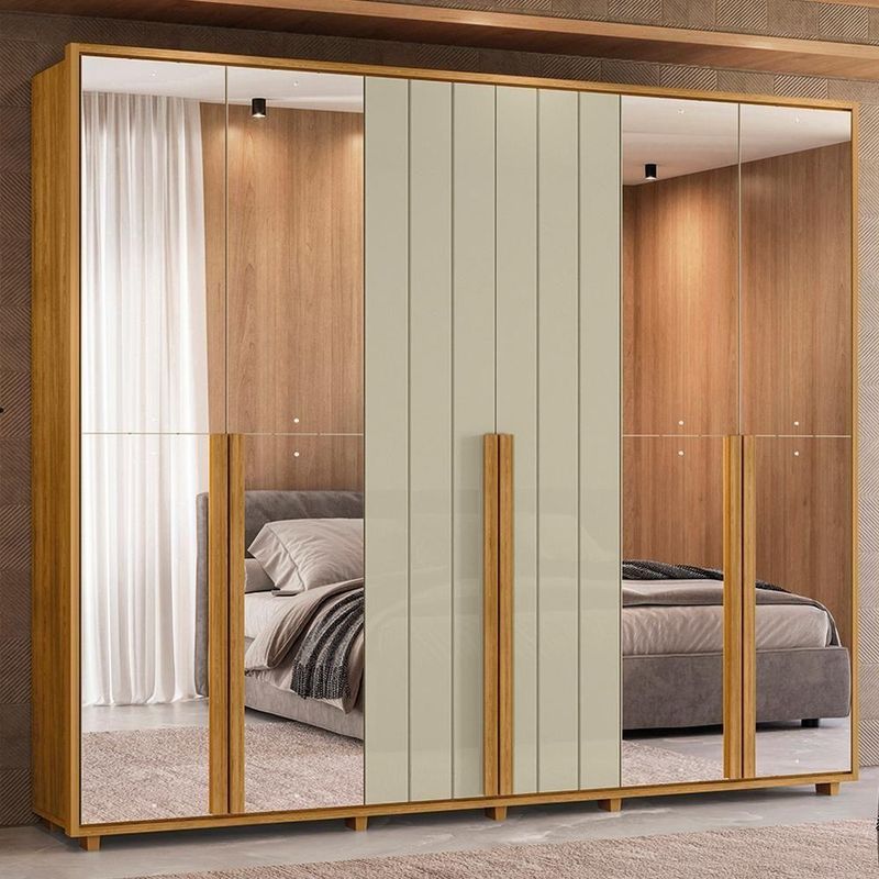 Guarda Roupa Casal Volpi 6 Portas Com Espelhos Mdf 278 Cm Cumaru Opala Madetec