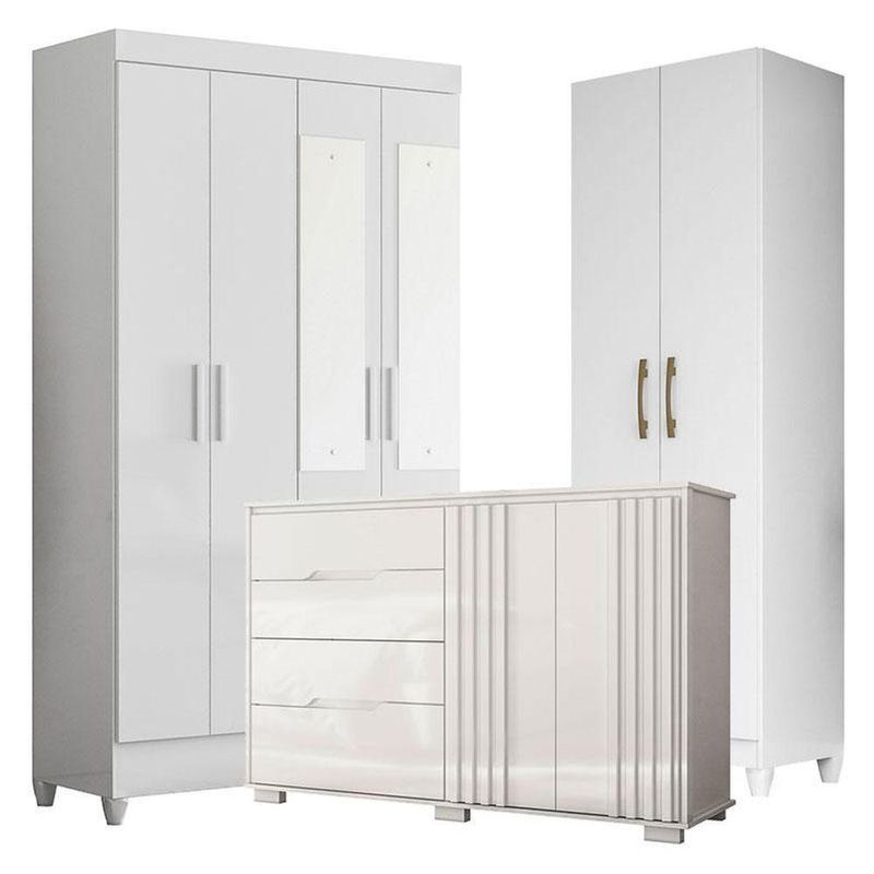 Guarda Roupa Com Espelho Infantil Madri Com Cômoda Texas E Armário Multiuso New íris Branco Brilho - Moval