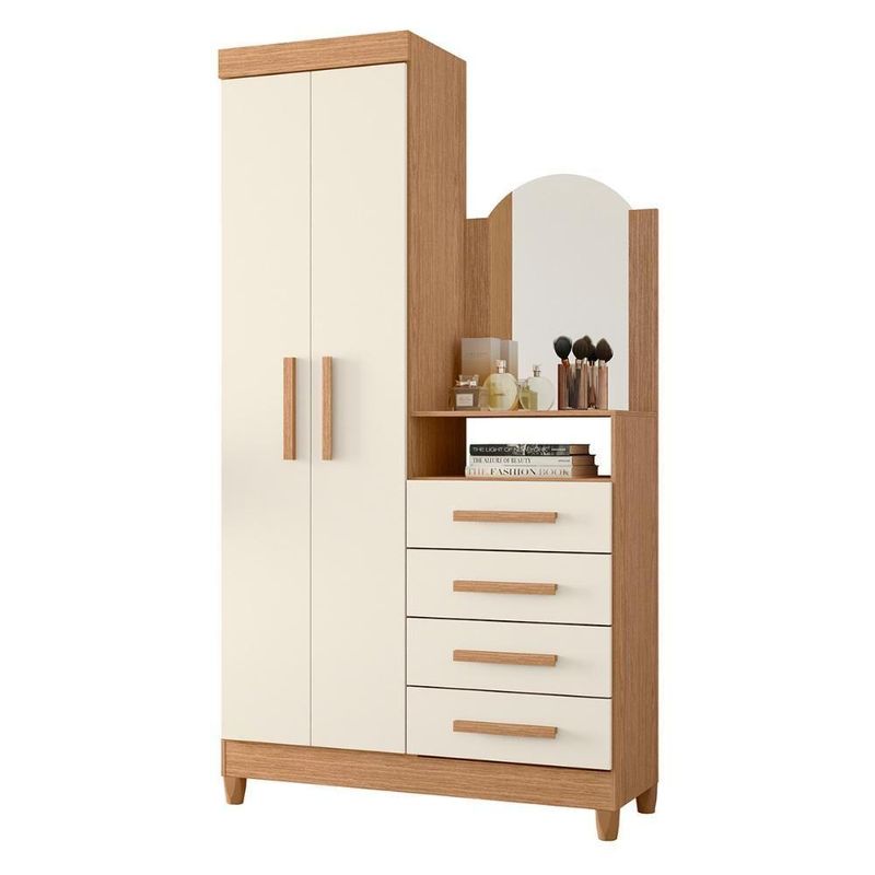 Guarda Roupa Cômoda Capri 2 Portas 4 Gavetas E Espelho Freijo/Off White