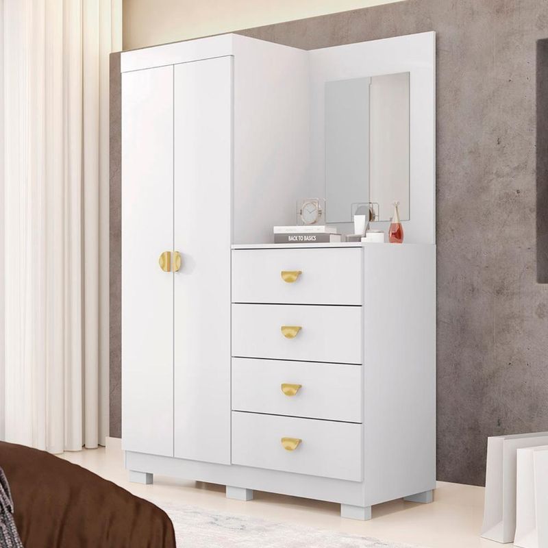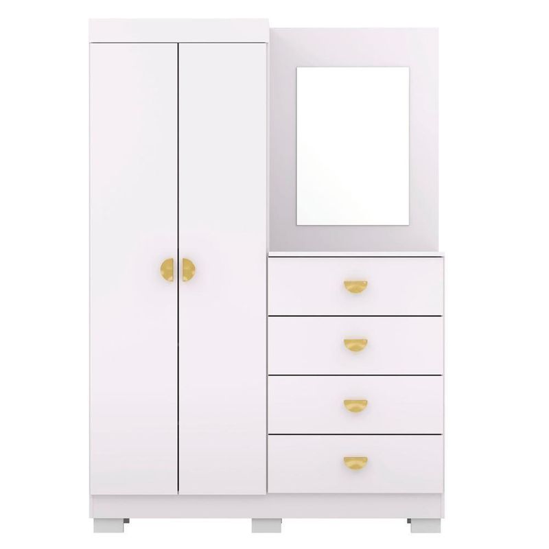 Guarda Roupa Cômoda Com Espelho 120cm Cristal Flex Branco - Vila Rica