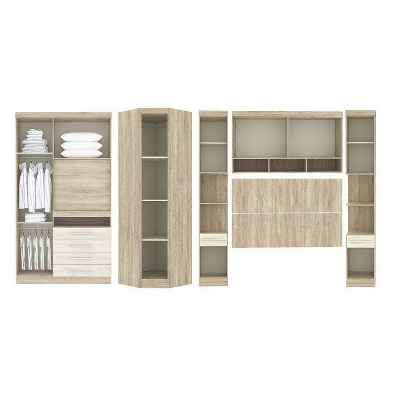 Guarda Roupa De Canto Casal 10 Portas Com Painel Giratório Para Tv E Cabeceira Master Luciane Móveis Avelã Rústico Com ártico Rústico