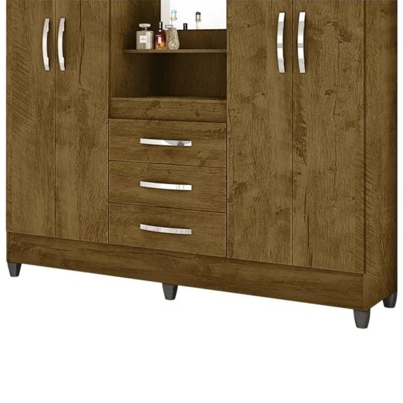 Guarda Roupa De Casal Capri 04 Portas E 03 Gavetas Castanho Wood - Moval