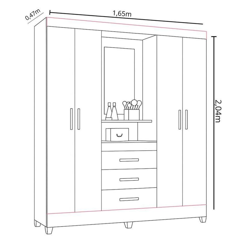 Com design moderno e estrutura funcional, o Guarda-Roupa Capri é perfeito para quem busca praticidade e estilo em um único móvel. Seu formato com 4 portas de giro e 3 gavetas oferece amplo espaço para roupas, calçados e acessórios, garantindo organização e conforto no dia a dia.O modelo faz parte da linha Smart, combinando elegância e durabilidade. As gavetas com corrediças metálicas proporcionam deslizamento suave, enquanto os cabideiros e calceiros em alumínio garantem resistência. Os puxadores em MDF e os pés em PVC completam o conjunto, oferecendo acabamento refinado e facilidade de limpeza.Dimensões:Altura: 204 cmLargura: 165 cmProfundidade: 47 cmDiferenciais:- 4 portas de giro com ótimo aproveitamento interno- 3 gavetas amplas com corrediças metálicas resistentes- Cabideiro e calceiro em alumínio para melhor organização- Puxadores em MDF, com toque moderno e ergonômico- Pés em PVC que facilitam a limpeza e protegem o móvel da umidade- Estrutura robusta e compacta, ideal para diversos tipos de quarto- Design da linha Smart, unindo praticidade e elegância