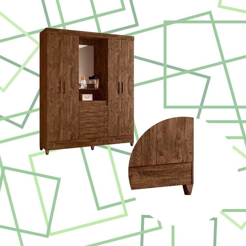Guarda Roupa Grande Quarto Capri 4 Portas 3 Gavetas Espelho Castanho