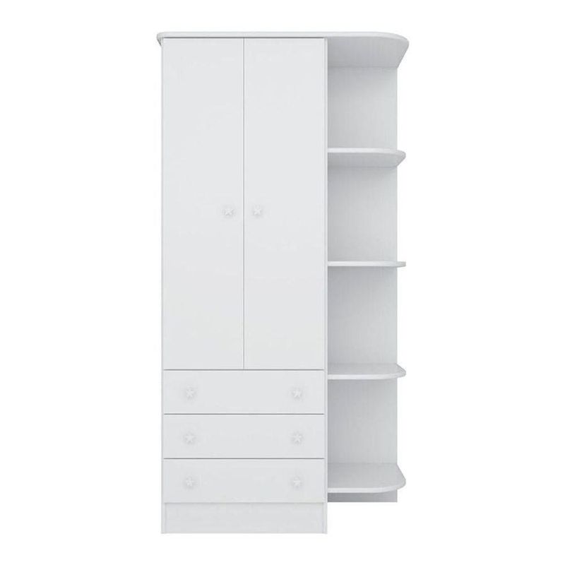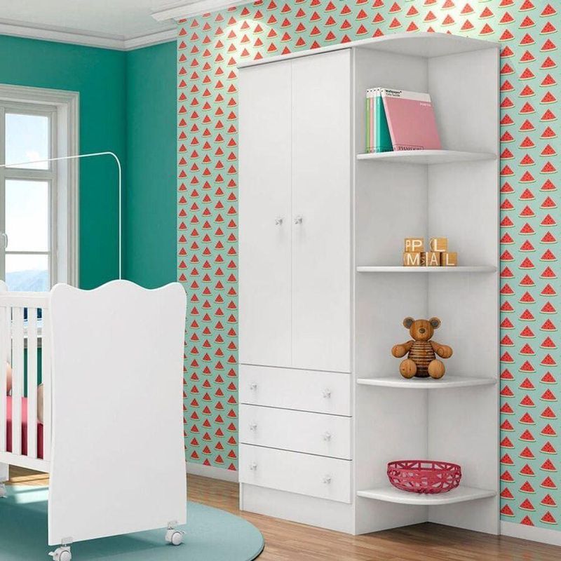 ? Cabideiro oblongo metálico e ótima divisão interna para roupas longas; ? Gavetas com corrediças metálicas e excelente profundidade; ? Puxadores em plástico poliestireno com formato de estrela, que deixará seu ambiente mágico; ? Produto com portas contendo dobradiças metálicas; ? Amplo espaço interno com prateleiras estrategicamente posicionadas para melhor organização; ? Pés opcionais para evitar o contato do produto com o chão; ? Embalagem feita com papelão revestido por plástico, com isomanta e com BUP's (proteção de cantos) para garantir a qualidade do produto; ? Bordas com um ótimo acabamento em perfil PVC; ? Cantoneira acoplada para decoração do ambiente; ? Excelente acabamento revestido em pintura UV, que dá maior destaque à cor; ? Estrutura produzida com materiais de alta qualidade.