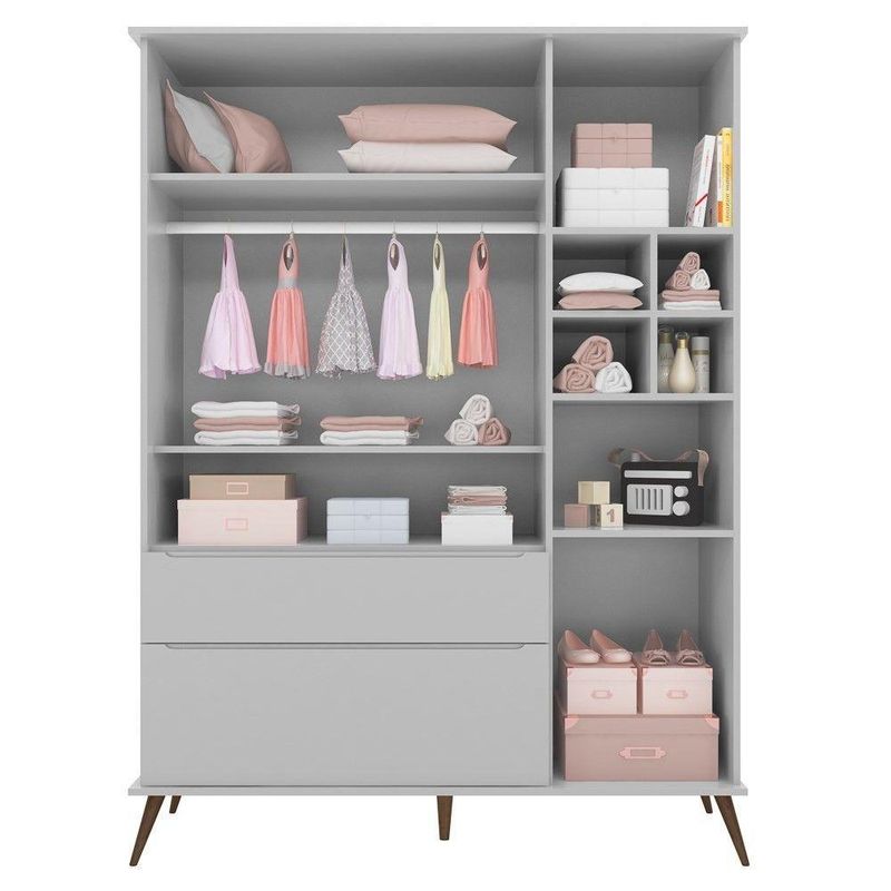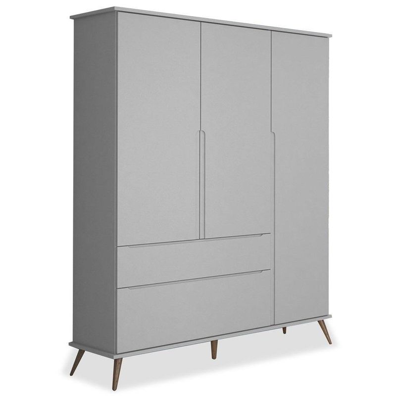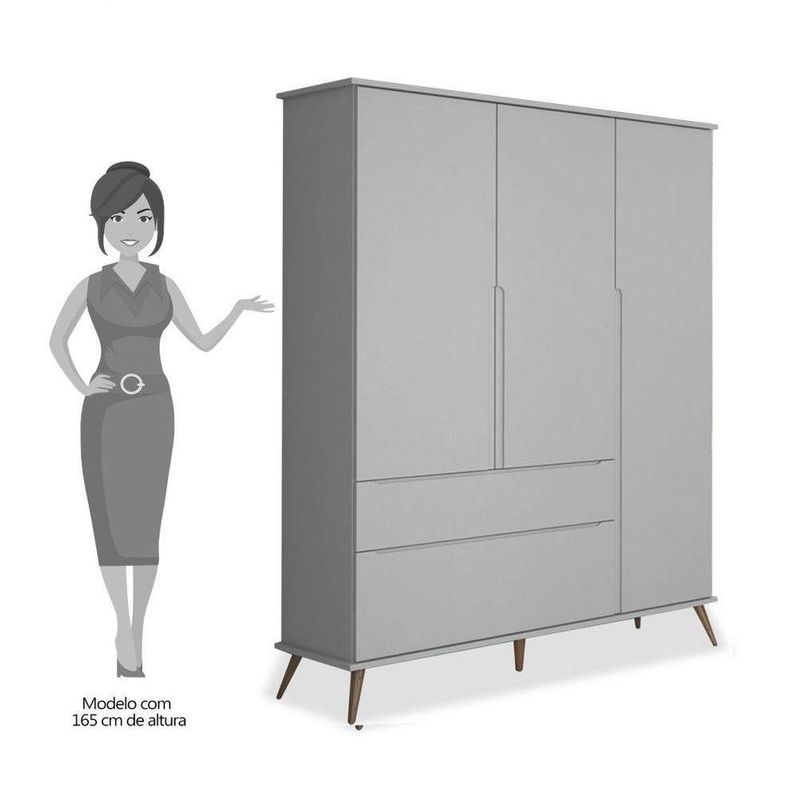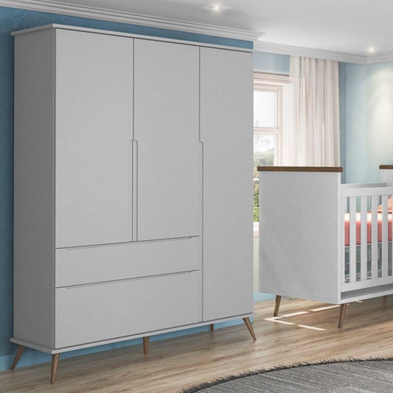 Guarda Roupa Infantil 100% Mdf 3 Portas Pés Retrô Mel P04 Cinza - Mpozenato